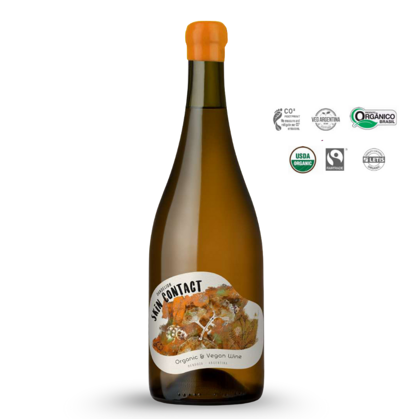 Vinho argentino branco orgânico elaborado com o blend das uvas Ugni Blanc e Moscatel. Fermetanto com as películas, estilo laranja. Na boca apresenta notas de camomila, em combinação com frutas brancas e notas de nectarina. Acidez bem equilibrada que o torna fresco e com um longo final de boca.