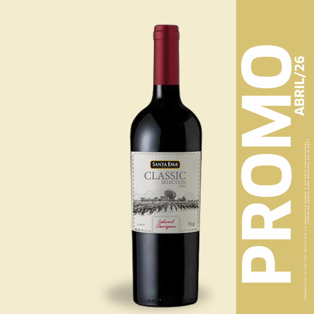O SANTA EMA CLASSIC SELECTION CABERNET SAUVIGNON é feito com uvas selecionadas do Vale Central. De cor vermelho rubi brilhante, oferece aromas intensos de frutas vermelhas, como ameixas e framboesas, e notas torradas. Bem balanceado e com bom volume no paladar, é muito persistente e tem um ótimo final frutado. Na harmonização, acompanha carnes vermelhas, pratos condimentados, guisados e queijos.
